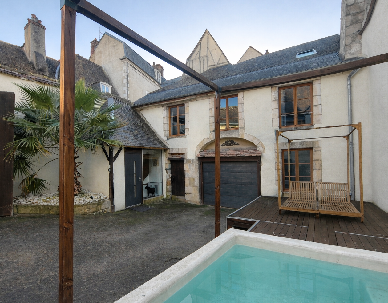 Staying at La Galerie means enjoying a rare immersion in historic Bourges. Located in an 18th-century pavilion, in the peaceful setting of a courtyard, facing a 15th-century half-timbered house, the apartment blends heritage, art, and serenity. Works of art displayed throughout extend the cultural experience, while a swimming pool invites you to relax just steps away from the city’s major landmarks, making “The Sleeping Beauty” a truly vibrant city.